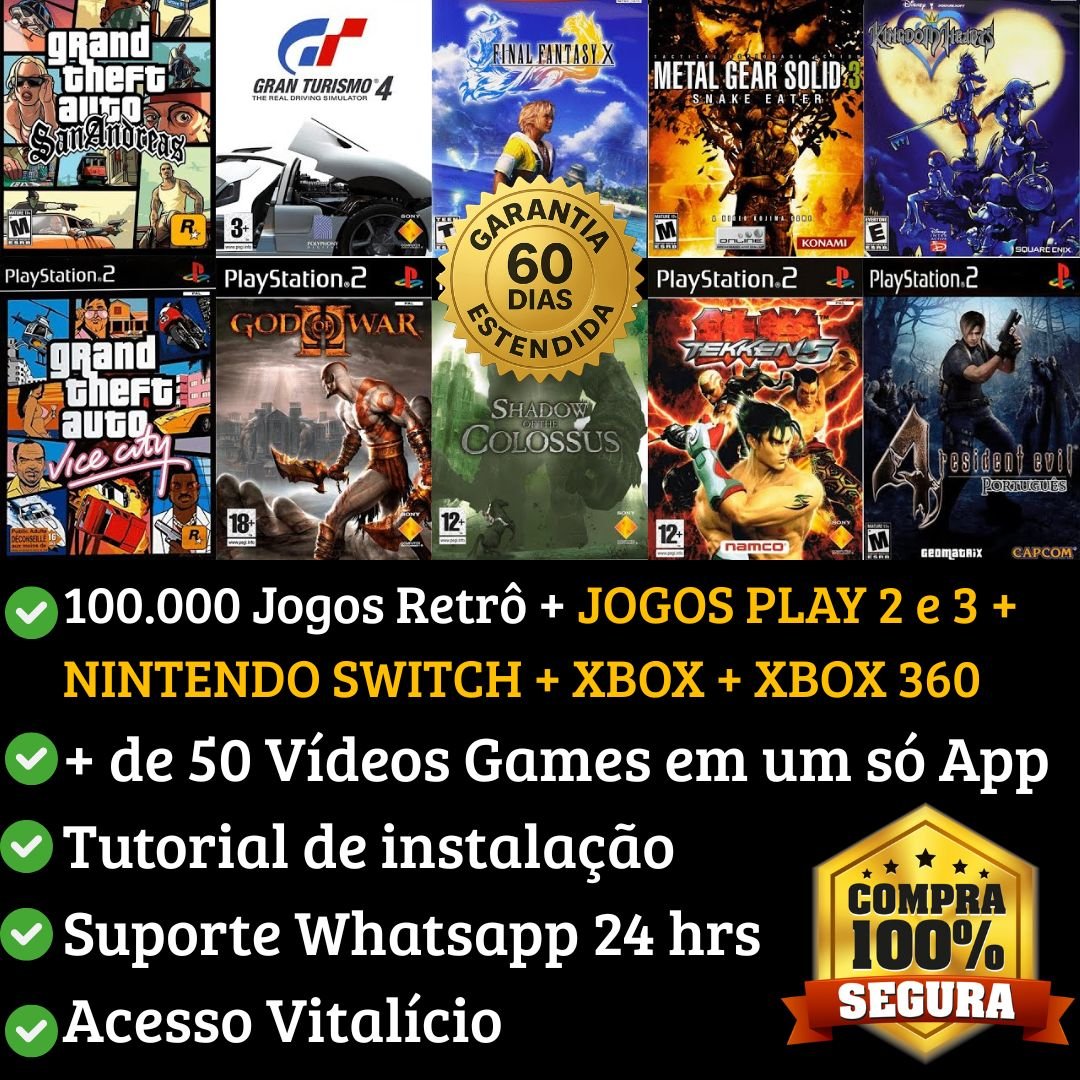 Combo Jogos Retrô + (PlayStation 2, 3 + Nintendo Switch + Nintendo Wii + Xbox + Xbox 360 + Saturn)  × 1 R$49,80